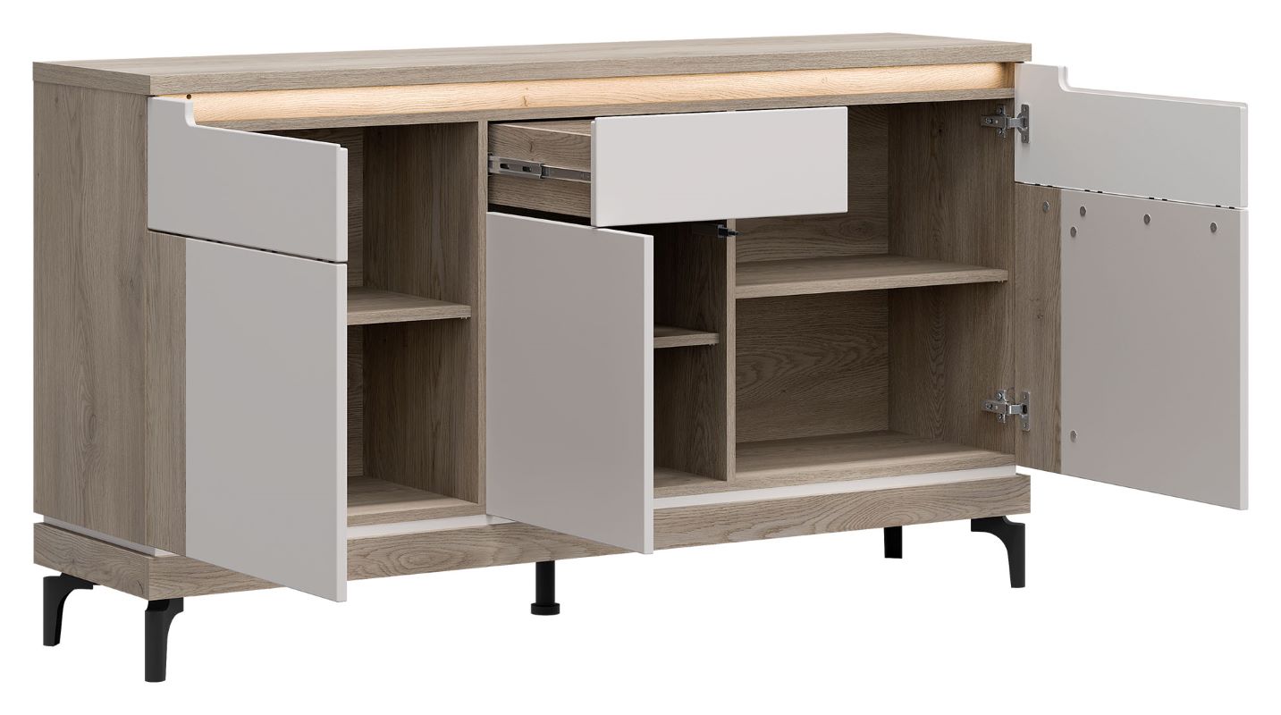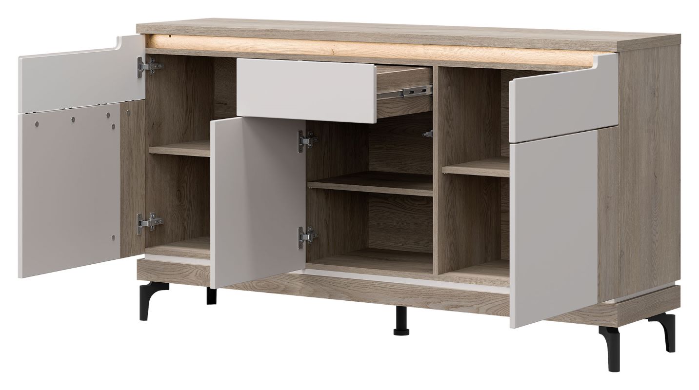 Komoda z kolekcji Aston, model AN03, to połączenie nowoczesnego designu z funkcjonalnością i elegancją. Jej wyrafinowany wygląd oraz wysoka jakość wykonania sprawiają, że doskonale wpasuje się w różnorodne wnętrza, dodając im nuty stylu i klasy. Komoda została wykonana z dbałością o każdy detal, używając wysokiej jakości materiałów, takich jak laminowana płyta wiórowa i MDF. Jej minimalistyczny, a zarazem efektowny design, charakteryzuje się prostymi, geometrycznymi kształtami i subtelnie wykończonymi detalami, co nadaje jej wyjątkowego uroku. Dostępna jest w eleganckim odcieniu kaszmir /dąb cremona, komoda z kolekcji Aston pozwala na dopasowanie jej do indywidualnych preferencji i wystroju pomieszczenia. Doskonale sprawdzi się zarówno w salonie, sypialni, jak i w holu czy gabinecie, zapewniając praktyczne miejsce do przechowywania oraz dodając wnętrzu elegancji.