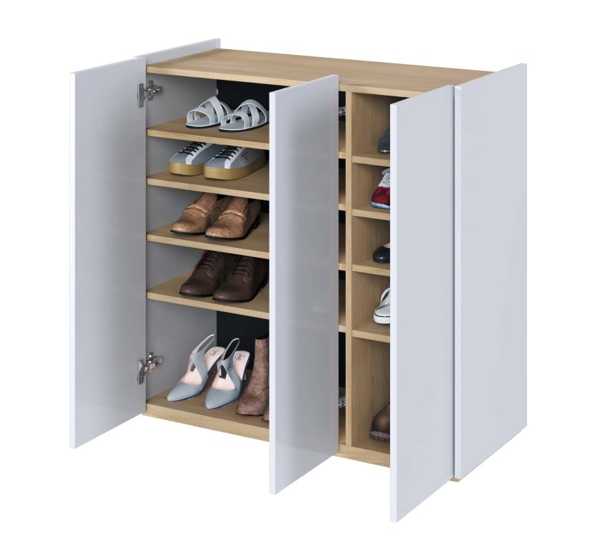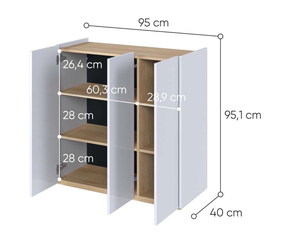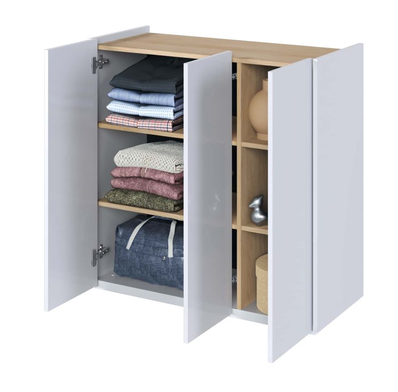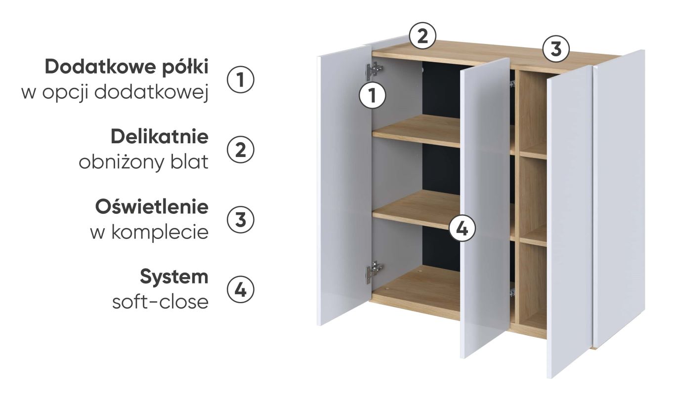 Komoda trzydrzwiowa Easy EA-03 z oświetleniem biały połysk/dąb scandi