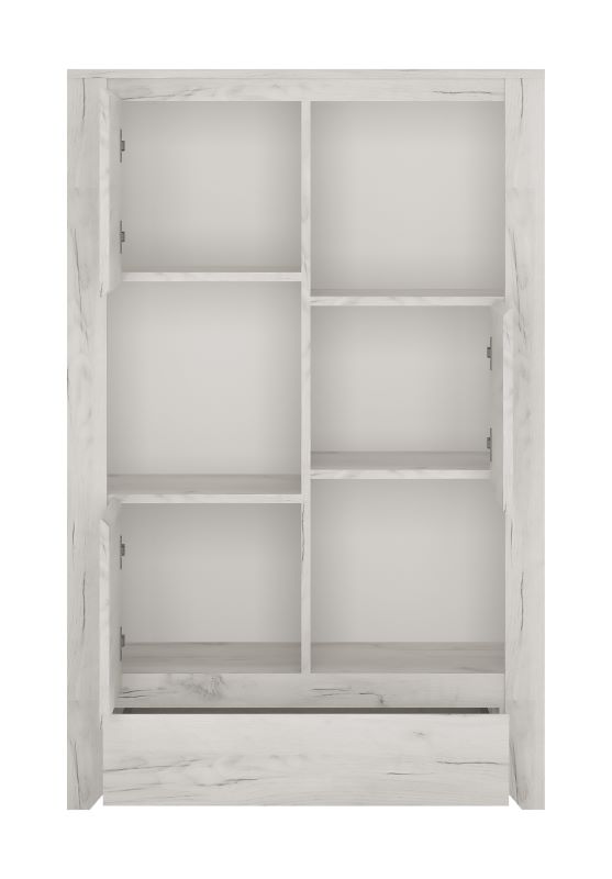 Dzięki przemyślanemu układowi wnętrza komoda pozwala utrzymać porządek w salonie, sypialni, pokoju młodzieżowym lub przedpokoju.