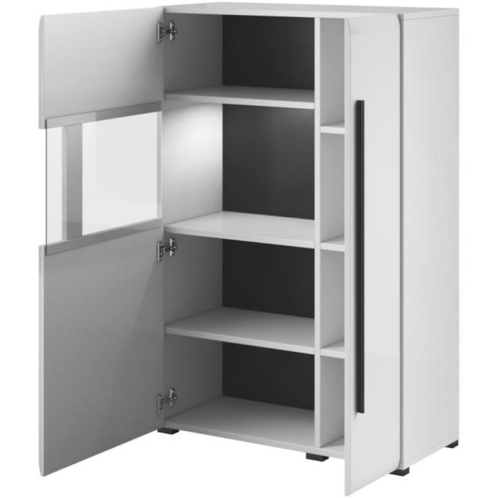 Doskonałym wyborem będzie biała komoda z serii Tulsa, materiał wykonania to płyta meblowa. Komoda posiada drzwiczki dzięki czemu ma łatwy dostęp do wnętrza, a także półki.