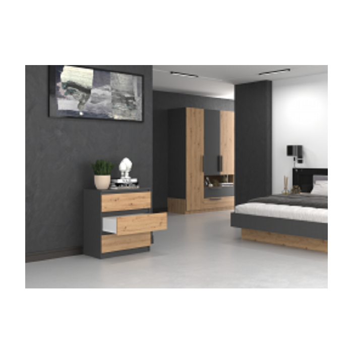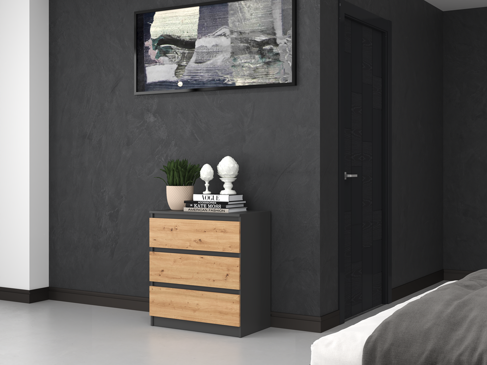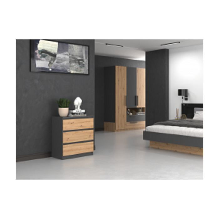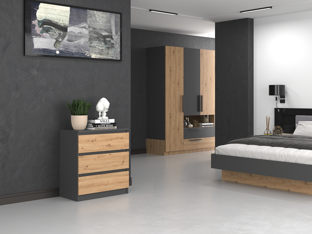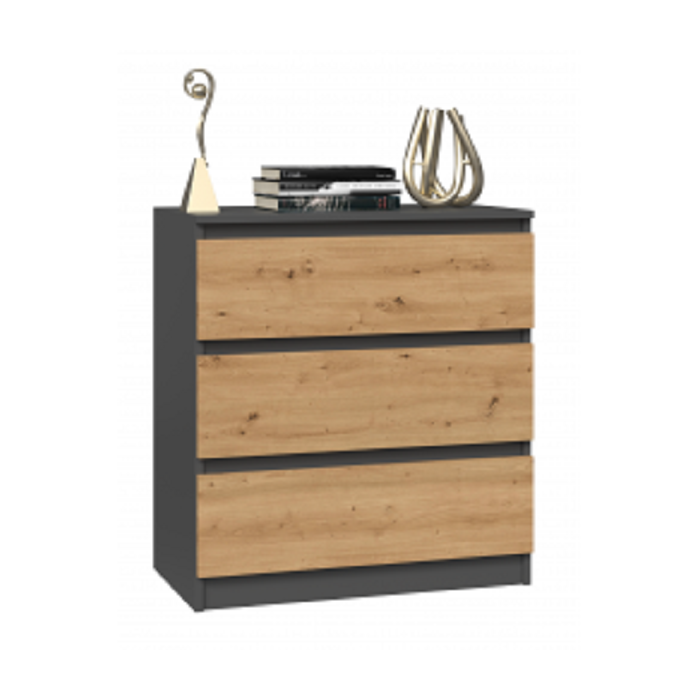 Jeśli szukasz uniwersalnej komody, która będzie charakteryzowała się nie tylko funkcjonalnością, ale i modnym designem, sprawdź walory komody Umo ! W pojemnych szufladach zmieszczą się dokumenty, bielizna, drobne sztuki odzieży i wszelkie potrzebne w każdym domu przedmioty. Dzięki temu wykorzystać ją można jako komodę do biura, salonu, sypialni, a nawet przedpokoju. Prosty, wyraźnie nawiązujący do stylu skandynawskiego design oraz kolory sprawiają, że komoda Umo stanowi doskonałą podstawę dalszych aranżacji. Co równie ważne, mebel został wykonany z najwyższej jakości płyt laminowanych o grubości, dzięki czemu jest wytrzymały, odporny na uszkodzenia, a także łatwy do utrzymania w czystości. Mebel do samodzielnego montażu.