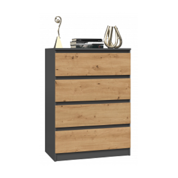 Jeśli szukasz uniwersalnej komody, która będzie charakteryzowała się nie tylko funkcjonalnością, ale i modnym designem, sprawdź walory komody Umo ! W pojemnych szufladach zmieszczą się dokumenty, bielizna, drobne sztuki odzieży i wszelkie potrzebne w każdym domu przedmioty. Dzięki temu wykorzystać ją można jako komodę do biura, salonu, sypialni, a nawet przedpokoju. Prosty, wyraźnie nawiązujący do stylu skandynawskiego design oraz kolory sprawiają, że komoda Umo stanowi doskonałą podstawę dalszych aranżacji. Co równie ważne, mebel został wykonany z najwyższej jakości płyt laminowanych o grubości, dzięki czemu jest wytrzymały, odporny na uszkodzenia, a także łatwy do utrzymania w czystości. Mebel do samodzielnego montażu.
