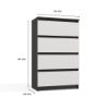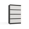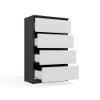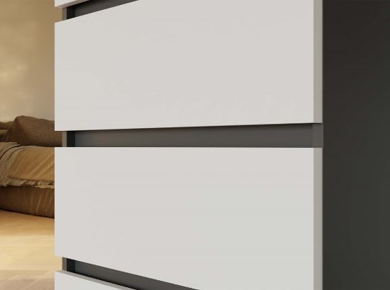 Szuflady zamontowane na prowadnicach rolkowych gwarantują wygodne i bezpieczne użytkowanie, umożliwiając płynne i ciche otwieranie oraz zamykanie. Komoda Umo w kolorze antracyt/biały to praktyczny i elegancki wybór, który wprowadzi do Twojego wnętrza zarówno funkcjonalność, jak i styl.