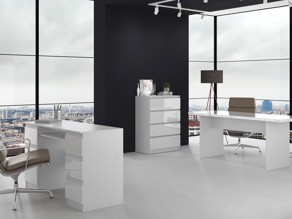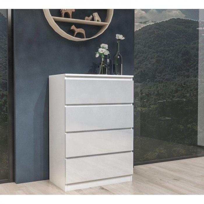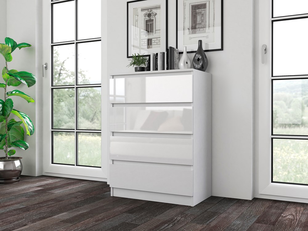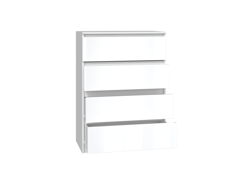 Nie ma dobrze wyposażonego, funkcjonalnego mieszkania bez pojemnej komody, takiej jak komoda Umo P4. Składa się ona z czterech ergonomicznie zaprojektowanych szuflad, dzięki czemu pojemność idzie w parze z kompaktowymi wymiarami (70x40x97 cm). Komoda Umo P4 swoim designem wyraźnie nawiązuje do prostoty i funkcjonalności stylu scandi, ale będzie też pasować do wnętrz nowoczesnych, minimalistycznych czy prowansalskich. Biała komoda Umo P4 znajdzie zastosowanie jako mebel do salonu, sypialni, pokoju młodzieżowego, ale również jako komoda biurowa na dokumenty. Płyta laminowana o grubości 16 mm, z której została wykonana, przesądza o jej wytrzymałości, solidności oraz odporności na zniszczenia. Co ważne, jest także łatwa do utrzymania w czystości. Mebel do samodzielnego montażu.