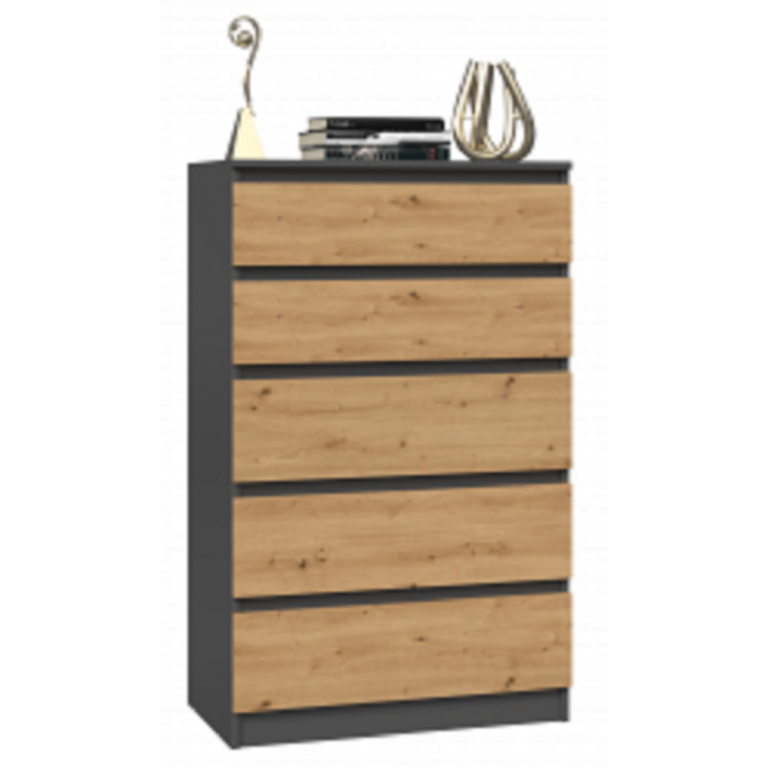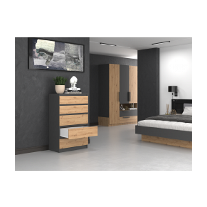 Jeśli szukasz uniwersalnej komody, która będzie charakteryzowała się nie tylko funkcjonalnością, ale i modnym designem, sprawdź walory komody Umo ! W pojemnych szufladach zmieszczą się dokumenty, bielizna, drobne sztuki odzieży i wszelkie potrzebne w każdym domu przedmioty. Dzięki temu wykorzystać ją można jako komodę do biura, salonu, sypialni, a nawet przedpokoju. Prosty, wyraźnie nawiązujący do stylu skandynawskiego design oraz kolory sprawiają, że komoda Umo stanowi doskonałą podstawę dalszych aranżacji. Co równie ważne, mebel został wykonany z najwyższej jakości płyt laminowanych o grubości, dzięki czemu jest wytrzymały, odporny na uszkodzenia, a także łatwy do utrzymania w czystości. Mebel do samodzielnego montażu.