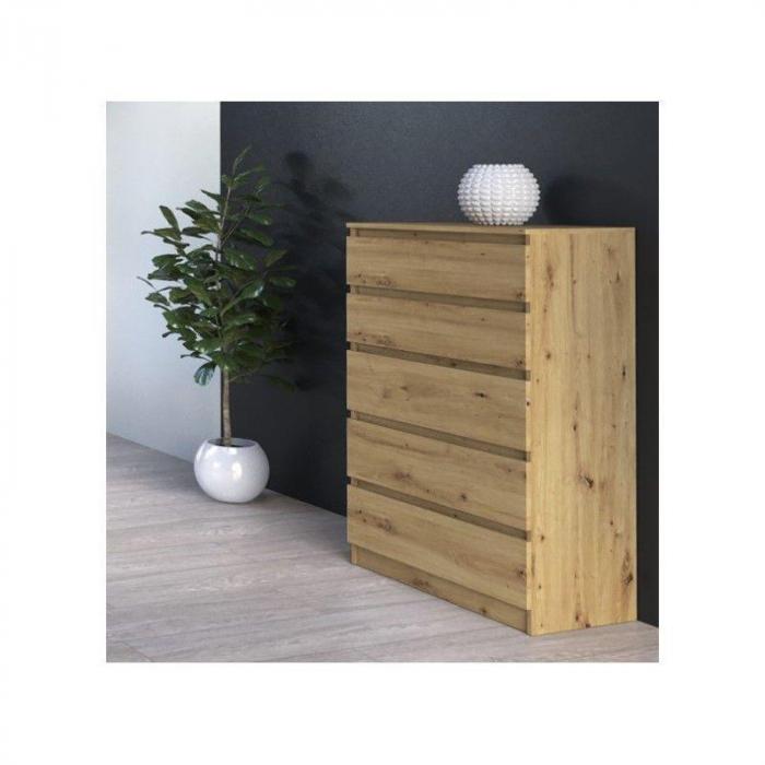 Jeśli szukasz uniwersalnej komody, która będzie charakteryzowała się nie tylko funkcjonalnością, ale i modnym designem, sprawdź walory komody Umo P5! W pięciu ergonomicznych, pojemnych szufladach zmieszczą się dokumenty, bielizna, drobne sztuki odzieży i wszelkie potrzebne w każdym domu przedmioty. Dzięki temu wykorzystać ją można jako komodę do biura, salonu, sypialni, a nawet przedpokoju. Prosty, wyraźnie nawiązujący do stylu skandynawskiego design oraz kolory sprawiają, że komoda Umo P5 stanowi doskonałą podstawę dalszych aranżacji. Co równie ważne, mebel został wykonany z najwyższej jakości płyt laminowanych o grubości 16 mm, dzięki czemu jest wytrzymały, odporny na uszkodzenia, a także łatwy do utrzymania w czystości. Mebel do samodzielnego montażu.
