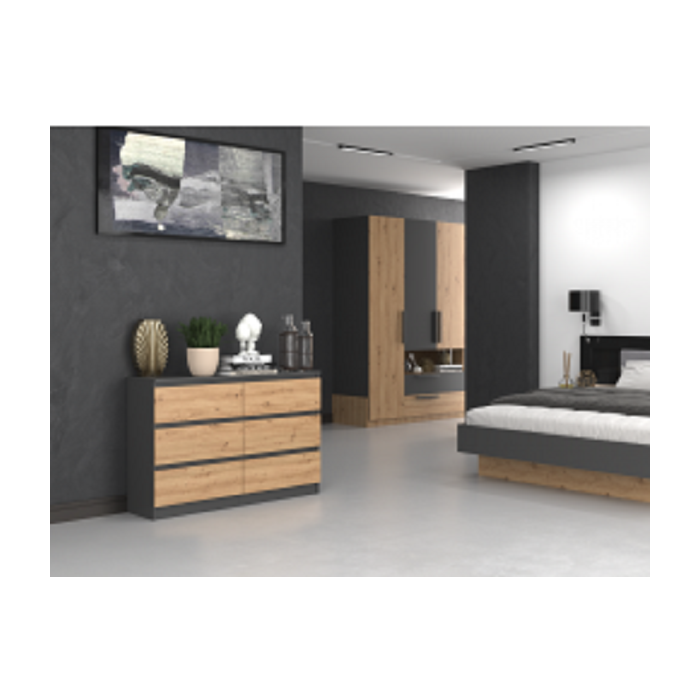 Jeśli szukasz uniwersalnej komody, która będzie charakteryzowała się nie tylko funkcjonalnością, ale i modnym designem, sprawdź walory komody Umo ! W pojemnych szufladach zmieszczą się dokumenty, bielizna, drobne sztuki odzieży i wszelkie potrzebne w każdym domu przedmioty. Dzięki temu wykorzystać ją można jako komodę do biura, salonu, sypialni, a nawet przedpokoju. Prosty, wyraźnie nawiązujący do stylu skandynawskiego design oraz kolory sprawiają, że komoda Umo stanowi doskonałą podstawę dalszych aranżacji. Co równie ważne, mebel został wykonany z najwyższej jakości płyt laminowanych o grubości, dzięki czemu jest wytrzymały, odporny na uszkodzenia, a także łatwy do utrzymania w czystości. Mebel do samodzielnego montażu.