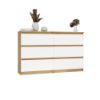 Komoda Umo P6 120 w kolorze dąb artisan/biały to stylowe i praktyczne rozwiązanie, które doskonale wpasuje się w każde wnętrze – od sypialni, przez salon, aż po biuro. Wykonana z wysokiej jakości laminowanej płyty wiórowej o grubości 16 mm, odpornej na zarysowania i wilgoć, gwarantuje trwałość i estetyczny wygląd na długie lata.