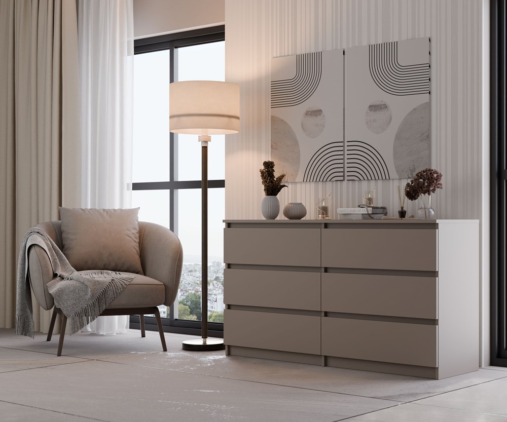 Komoda Umo w kolorze glina to funkcjonalny i stylowy mebel, który doskonale sprawdzi się w każdym wnętrzu. Wyposażona w sześć szuflad, stanowi idealne miejsce do przechowywania wszystkich niezbędnych przedmiotów, takich jak okulary, ulubiona książka czy telefon.