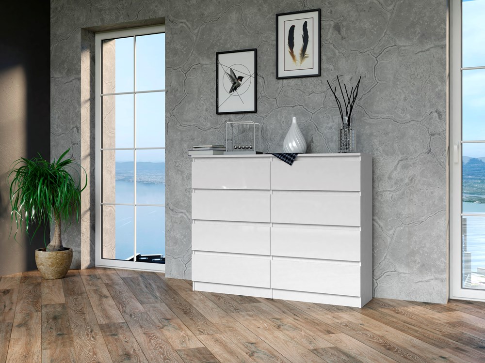 Prostota i skandynawski design, tak można w dwóch słowach opisać komody z serii Umo. Komoda Umo 8 120 składa się z 8 szuflad , bardzo elegancka, niezwykle pojemna i czarująca swoją minimalistyczną formą. Taka właśnie jest komoda Umo, stworzona z myślą o zagospodarowaniu różnego rodzaju wnętrz - od przestronnego salonu, sypialni, pokoju gościnnego czy młodzieżowego, jak również długiego holu. Czarujący kolor i pojemne szuflady komody to rozwiązanie nie tylko funkcjonalne, ale i maksymalnie sprawdzone. Mebel ten wykonano z wysokiej jakości płyty laminowanej, mogącej z powodzeniem służyć przez wiele lat. Komoda Umo to mebel na tyle uniwersalny, że z powodzeniem znaleźć się może w każdym mieszkaniu czy domu. Mebel do samodzielnego montażu.