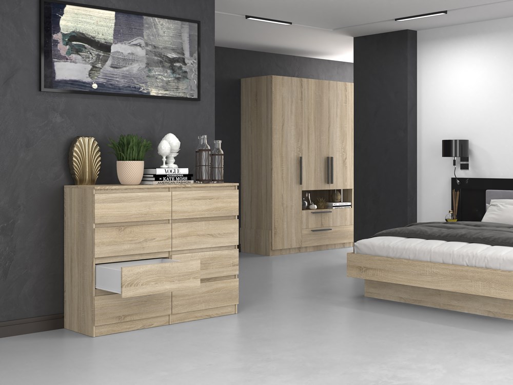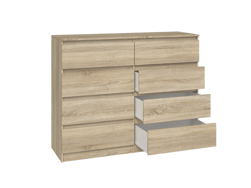 Prostota i skandynawski design, tak można w dwóch słowach opisać komody z serii Umo. Komoda Umo 8 120 składa się z 8 szuflad , bardzo elegancka, niezwykle pojemna i czarująca swoją minimalistyczną formą. Taka właśnie jest komoda Umo, stworzona z myślą o zagospodarowaniu różnego rodzaju wnętrz - od przestronnego salonu, sypialni, pokoju gościnnego czy młodzieżowego, jak również długiego holu. Czarujący kolor i pojemne szuflady komody to rozwiązanie nie tylko funkcjonalne, ale i maksymalnie sprawdzone. Mebel ten wykonano z wysokiej jakości płyty laminowanej, mogącej z powodzeniem służyć przez wiele lat. Komoda Umo to mebel na tyle uniwersalny, że z powodzeniem znaleźć się może w każdym mieszkaniu czy domu. Mebel do samodzielnego montażu.