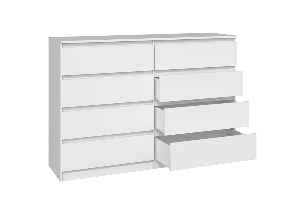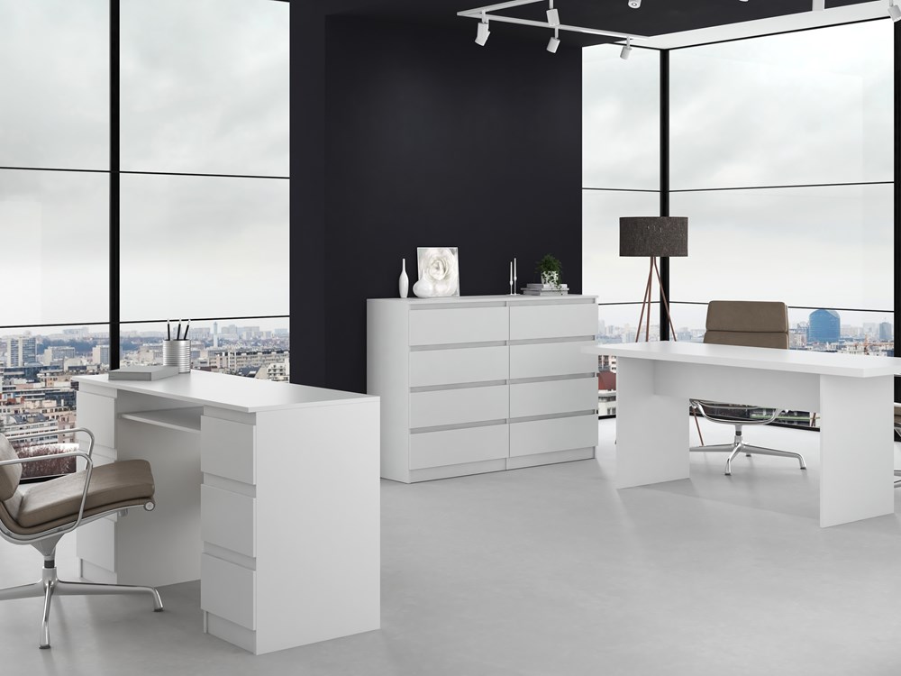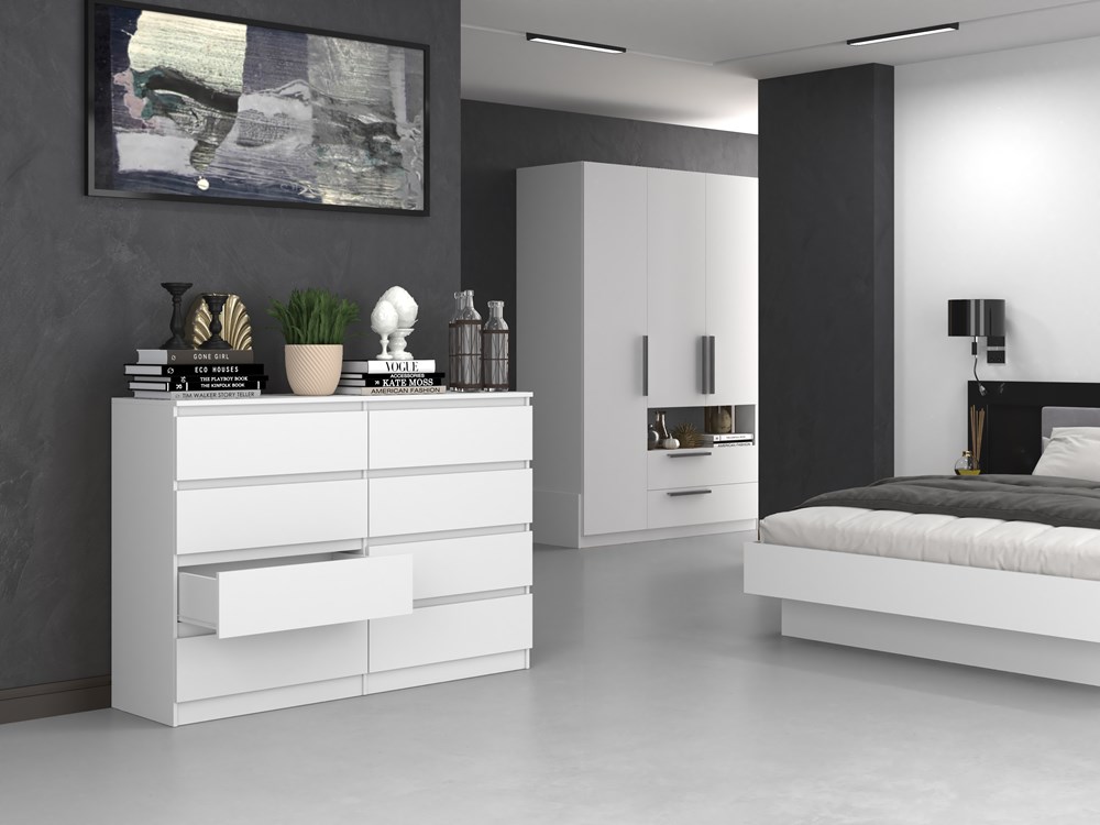 Prostota i skandynawski design, tak można w dwóch słowach opisać komody z serii Umo. Komoda Umo 8 140 składa się z 8 szuflad , bardzo elegancka, niezwykle pojemna i czarująca swoją minimalistyczną formą. Taka właśnie jest komoda Umo, stworzona z myślą o zagospodarowaniu różnego rodzaju wnętrz - od przestronnego salonu, sypialni, pokoju gościnnego czy młodzieżowego, jak również długiego holu. Czarujący kolor i pojemne szuflady komody to rozwiązanie nie tylko funkcjonalne, ale i maksymalnie sprawdzone. Mebel ten wykonano z wysokiej jakości płyty laminowanej, mogącej z powodzeniem służyć przez wiele lat. Komoda Umo to mebel na tyle uniwersalny, że z powodzeniem znaleźć się może w każdym mieszkaniu czy domu. Mebel do samodzielnego montażu.