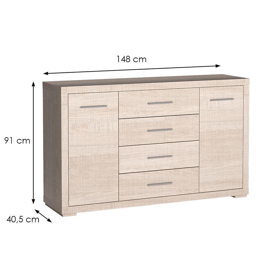 Komoda Vegas w kolorze santana to przede wszystkim nowoczesność i funkcjonalność w jednym. Mebel doskonale sprawdzi się w każdym salonie. Materiał wykonania to płyta wiórowa laminowana. Komoda posiada szuflady i drzwiczki dzięki czemu ma łatwy dostęp do wnętrza. Wygląd mebli jest nowoczesny. Mebel będzie pasował do wielu pomieszczeń jak np. jadalnia, pokój dzienny a nawet biuro . Meble jest bardzo pojemny, dlatego sprawdzi się w każdym pomieszczeniu - zarówno w sypialni, pokoju dziennym, młodzieżowym, czy też salonie. Mebel do samodzielnego montażu.