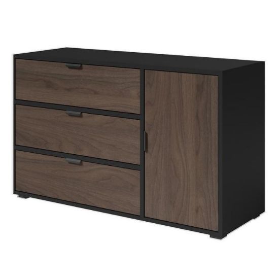 Doskonałym wyborem do pokoju dziennego, czy młodzieżowego będzie komoda w kolorze czarny/orzech, materiał wykonania to płyta laminowana. Komoda jest jednodrzwiowa i posiada trzy szuflady dzięki czemu ma łatwy dostęp do wnętrza. Komoda dopełni również wystrój salonu, czy przedpokoju, stanowiąc wygodne miejsce do przechowywania mniejszych i większych rzeczy. Mebel do samodzielnego montażu.