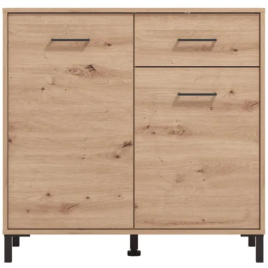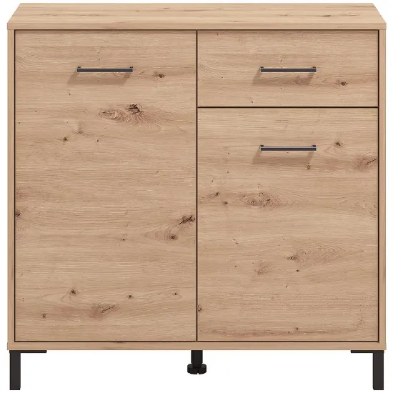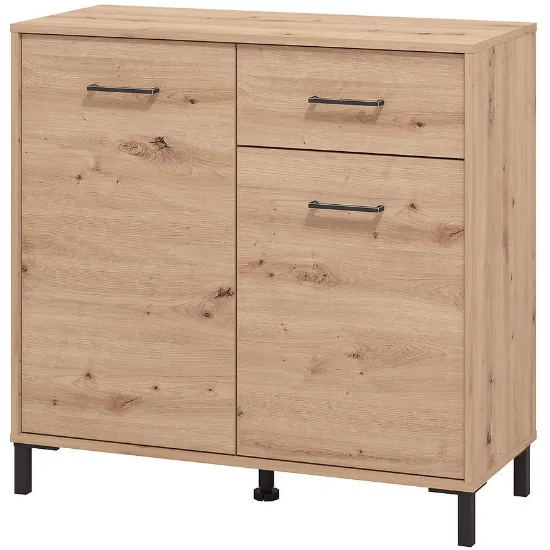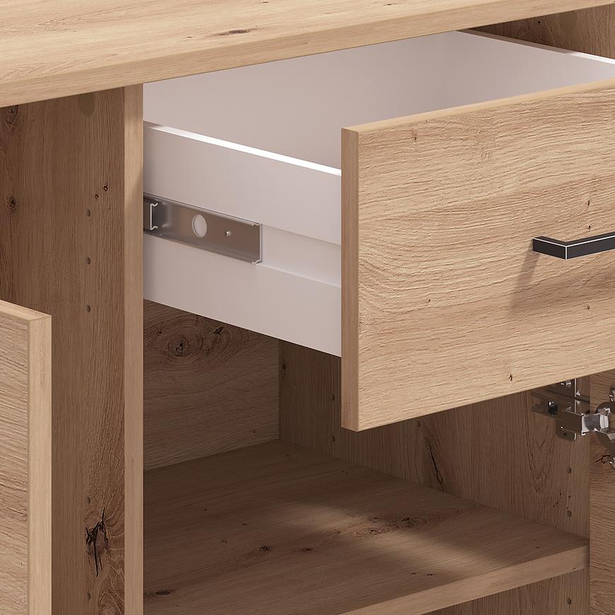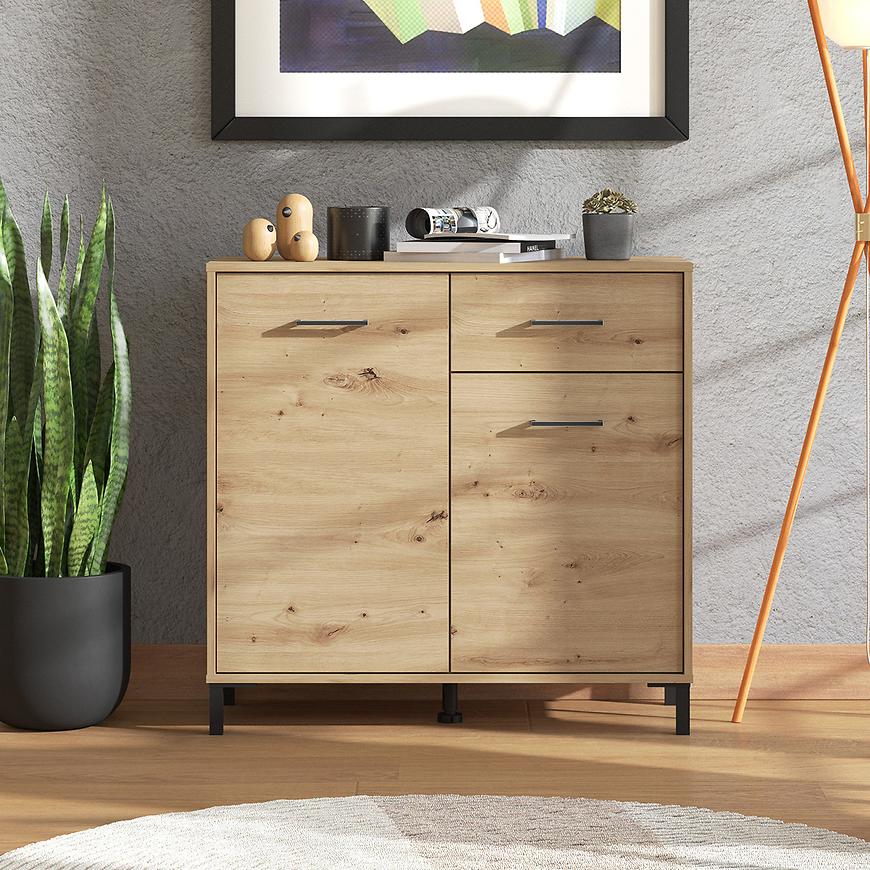 Komoda Vienne to doskonałe rozwiązanie dla osób ceniących elegancję i praktyczność. Wyposażona w drzwi i szufladę, zapewnia wygodne przechowywanie odzieży, dokumentów lub akcesoriów, pomagając utrzymać porządek w każdym pomieszczeniu. Mebel utrzymany jest w modnym kolorze artisan z matowym wykończeniem, które dodaje całości nowoczesnego, subtelnego charakteru.