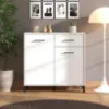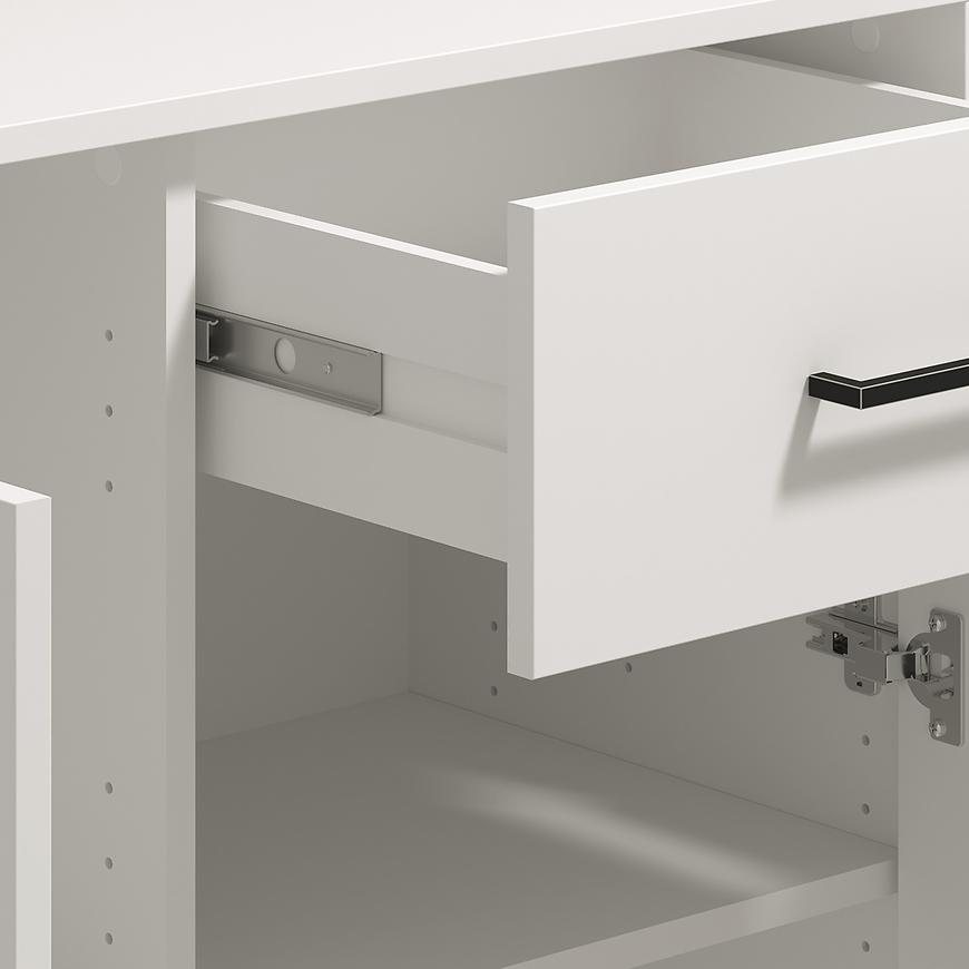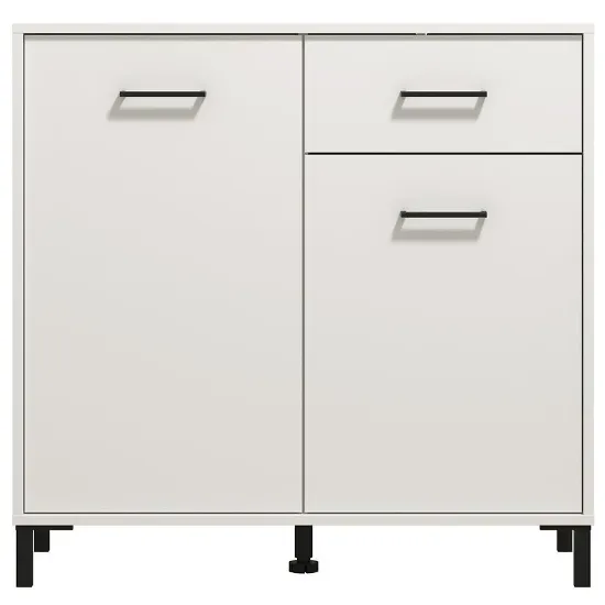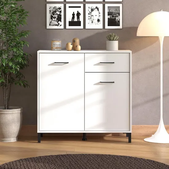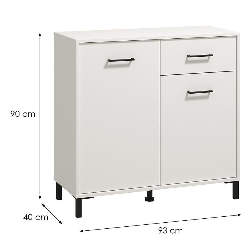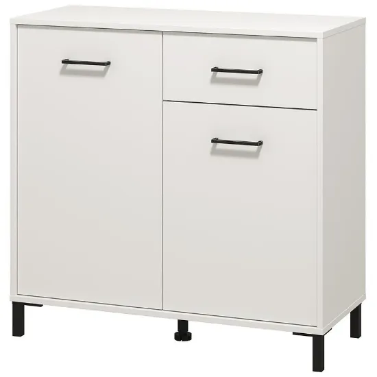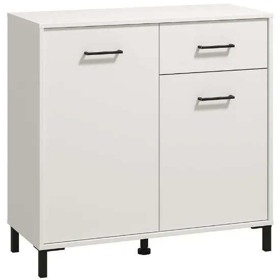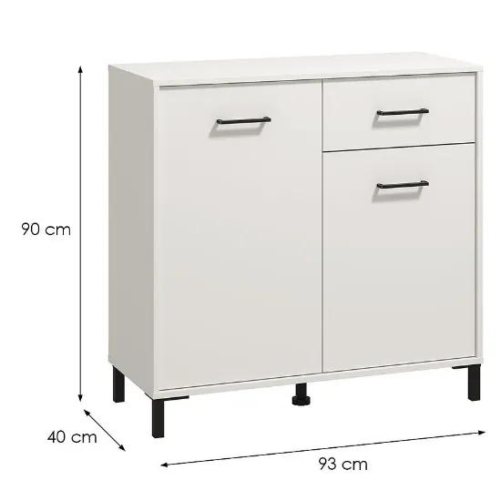 Komoda Vienne to doskonałe rozwiązanie dla osób ceniących elegancję i praktyczność. Wyposażona w drzwi i szufladę, zapewnia wygodne przechowywanie odzieży, dokumentów lub akcesoriów, pomagając utrzymać porządek w każdym pomieszczeniu. Mebel utrzymany jest w modnym kolorze białym z matowym wykończeniem, które dodaje całości nowoczesnego, subtelnego charakteru.