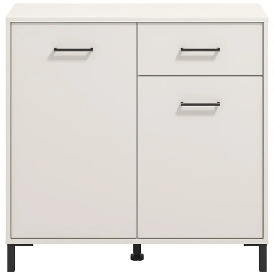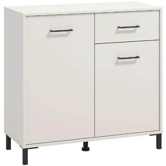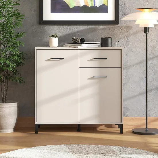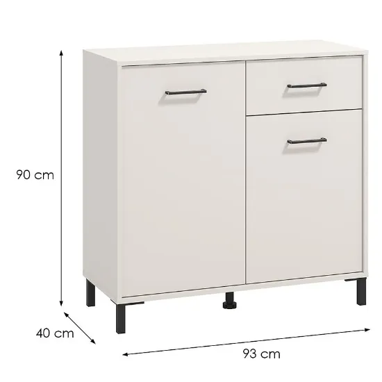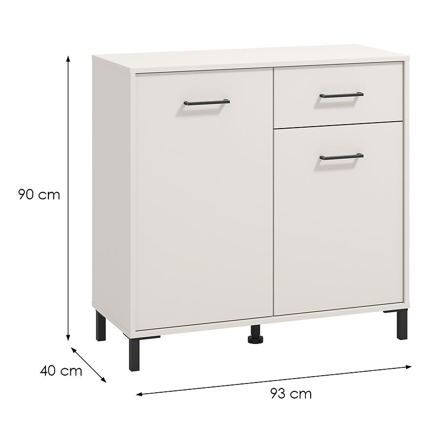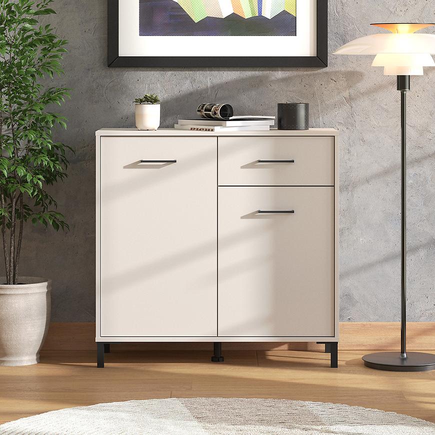 Komoda Vienne to doskonałe rozwiązanie dla osób ceniących elegancję i praktyczność. Wyposażona w drzwi i szufladę, zapewnia wygodne przechowywanie odzieży, dokumentów lub akcesoriów, pomagając utrzymać porządek w każdym pomieszczeniu. Mebel utrzymany jest w modnym kolorze kaszmir z matowym wykończeniem, które dodaje całości nowoczesnego, subtelnego charakteru.