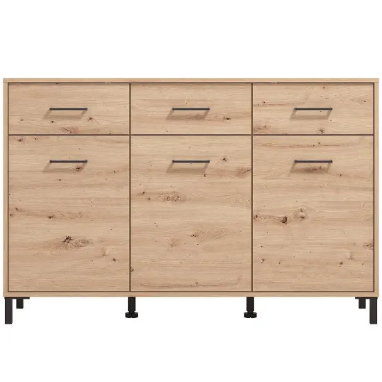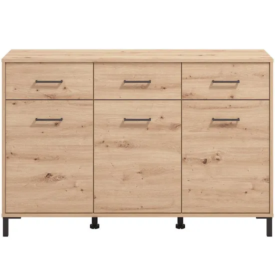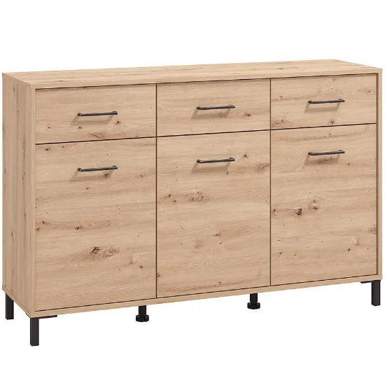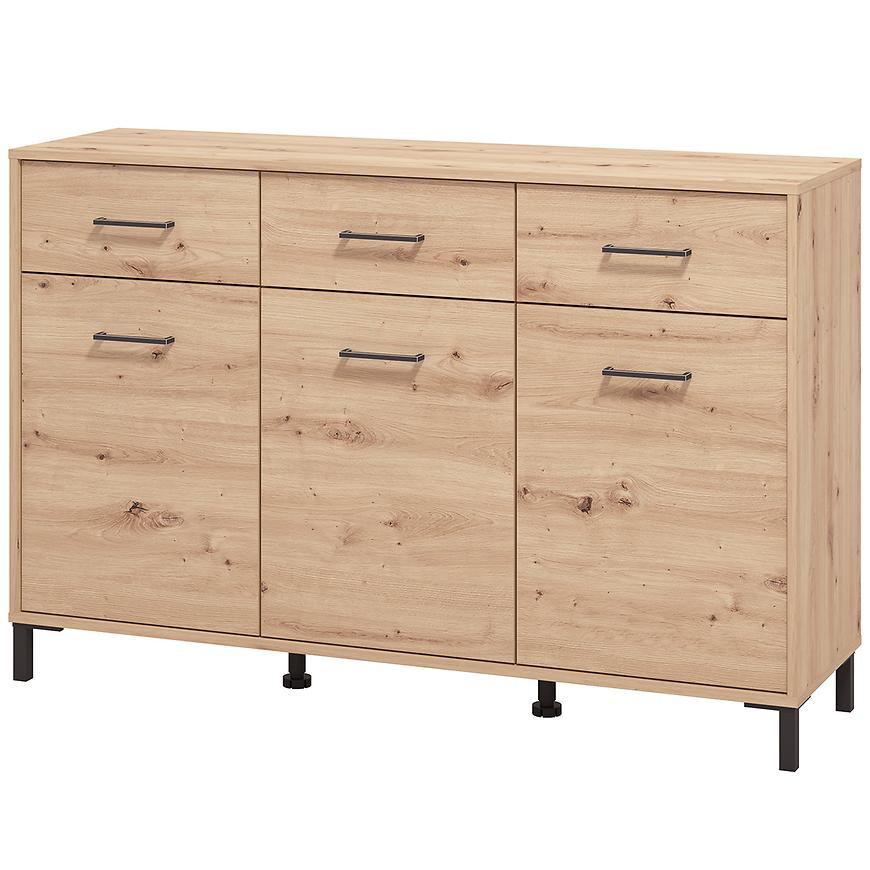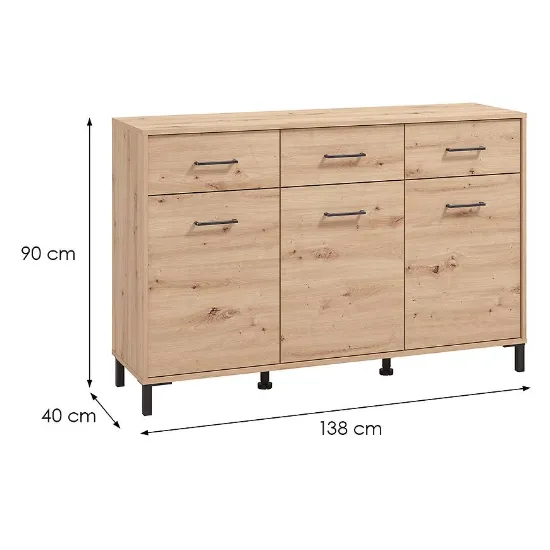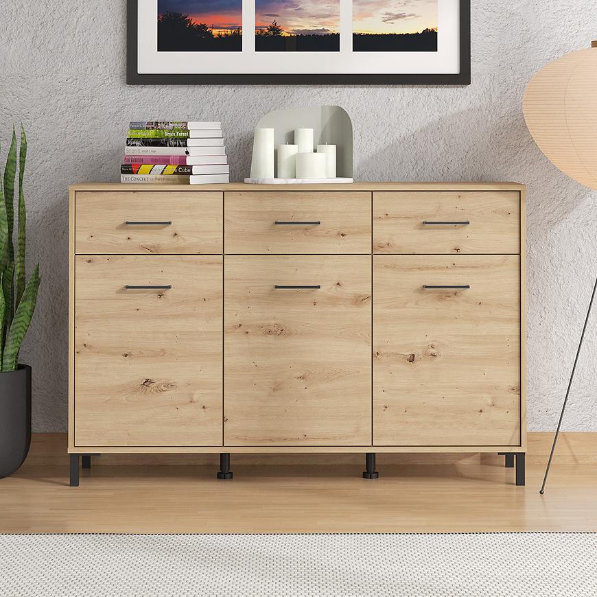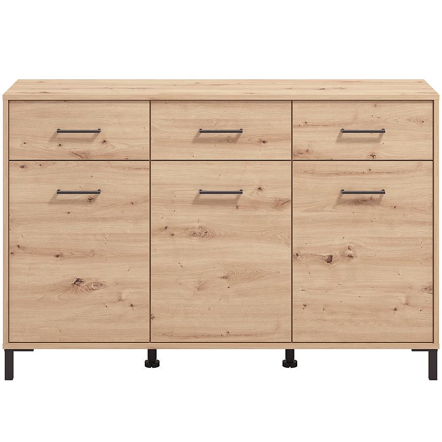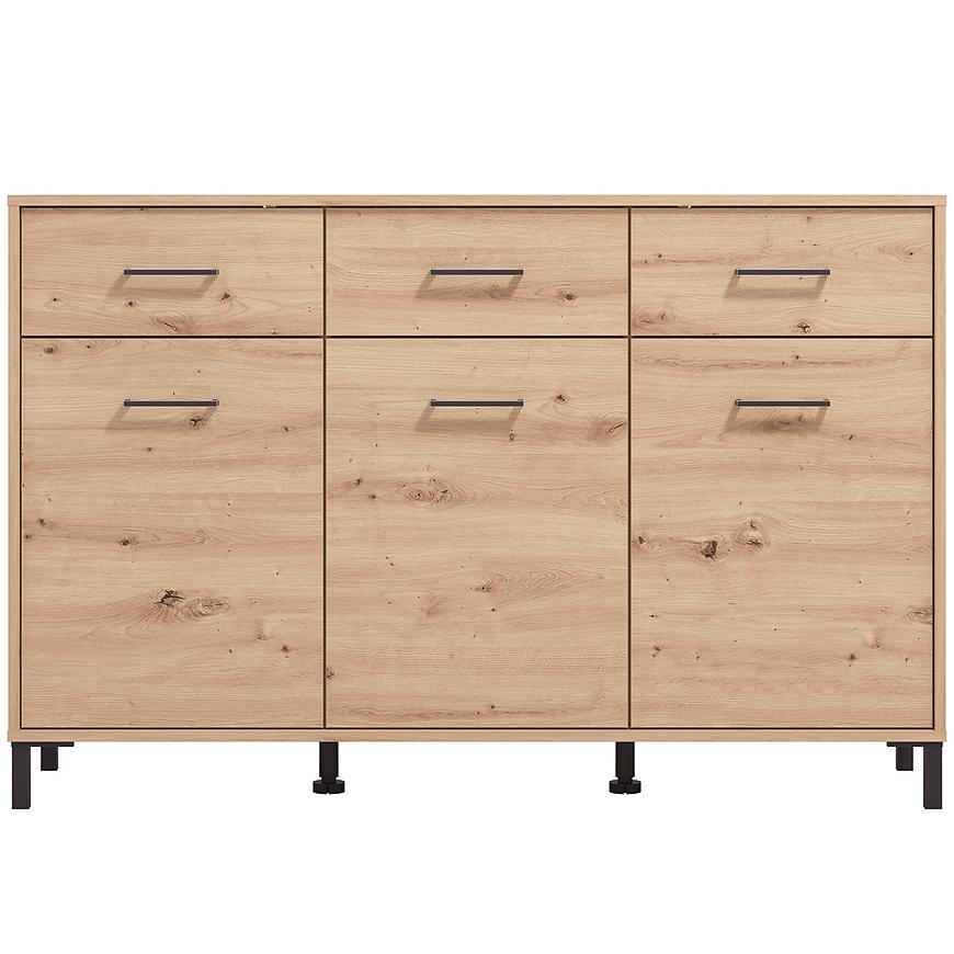 Komoda Vienne to doskonałe rozwiązanie dla osób ceniących elegancję i praktyczność. Wyposażona w trzy drzwi i szuflady, zapewnia wygodne przechowywanie odzieży, dokumentów lub akcesoriów, pomagając utrzymać porządek w każdym pomieszczeniu. Mebel utrzymany jest w modnym kolorze artisan z matowym wykończeniem, które dodaje całości nowoczesnego, subtelnego charakteru.