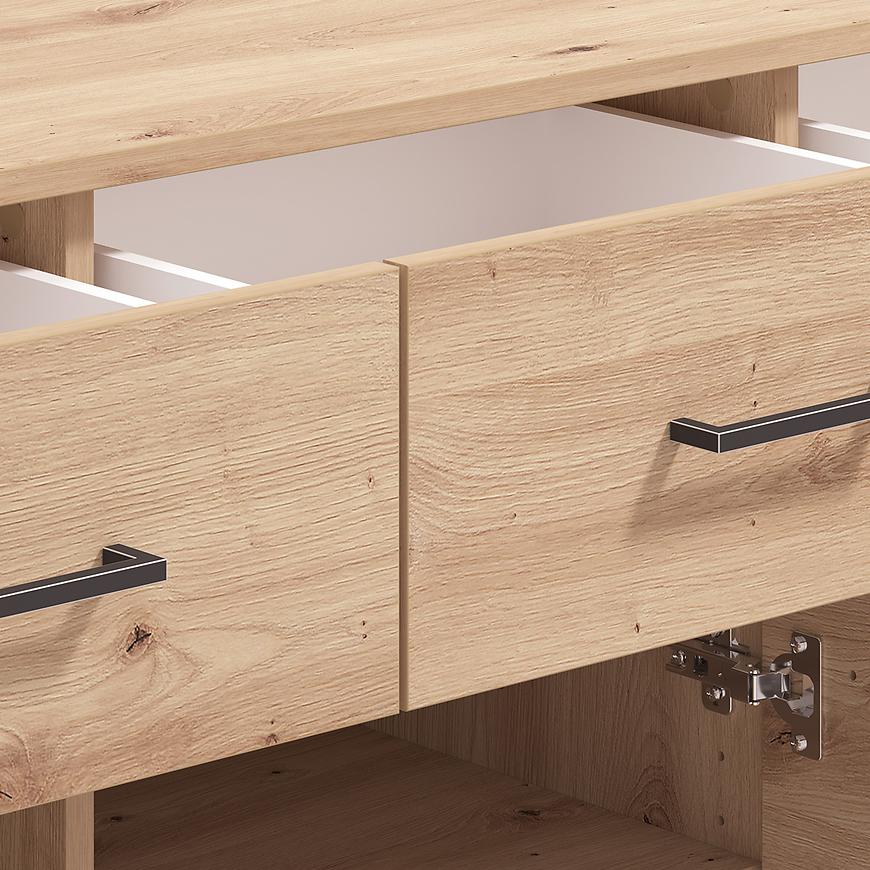 Solidna konstrukcja z wysokiej jakości płyty wiórowej laminowanej gwarantuje trwałość i odporność na codzienne użytkowanie. Komoda Vienne z kolekcji VIENNE to idealny wybór do salonu, sypialni lub przedpokoju – wszędzie tam, gdzie liczy się styl i funkcjonalność. Postaw na nowoczesny design i wprowadź elegancki akcent do swojego wnętrza dzięki komodzie Vienne!