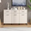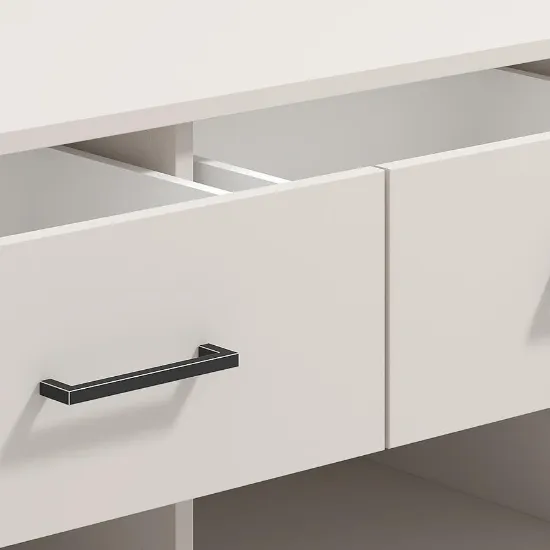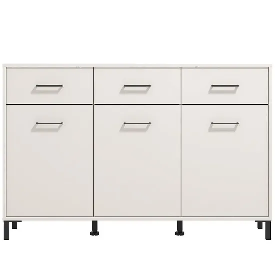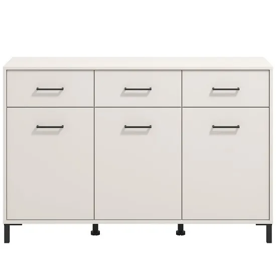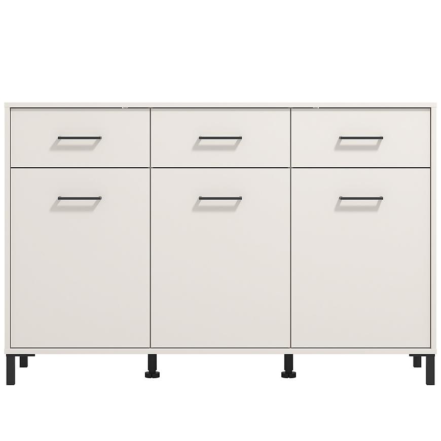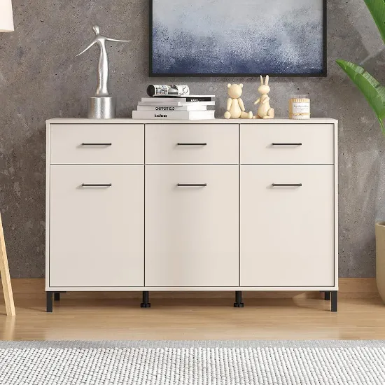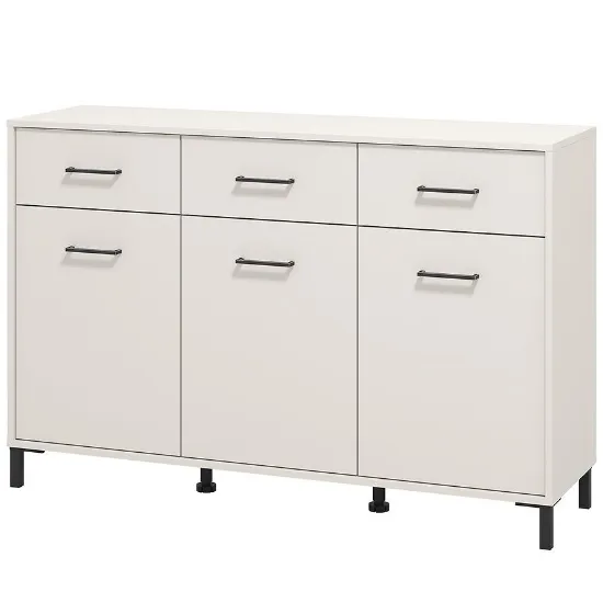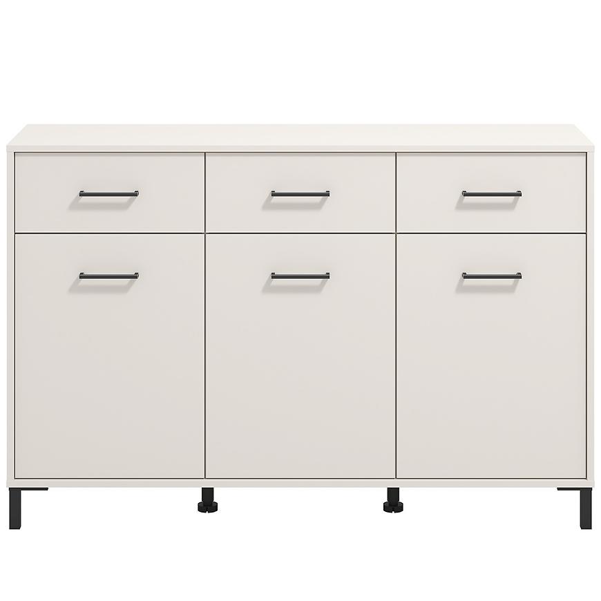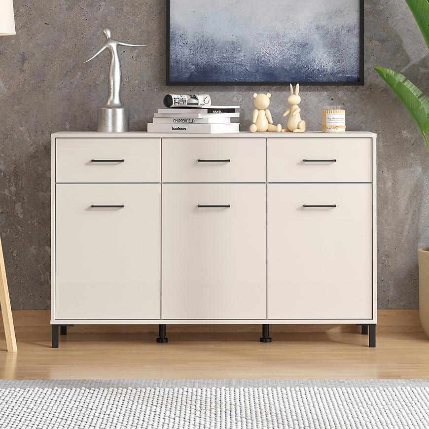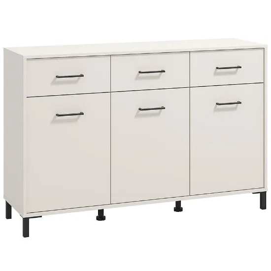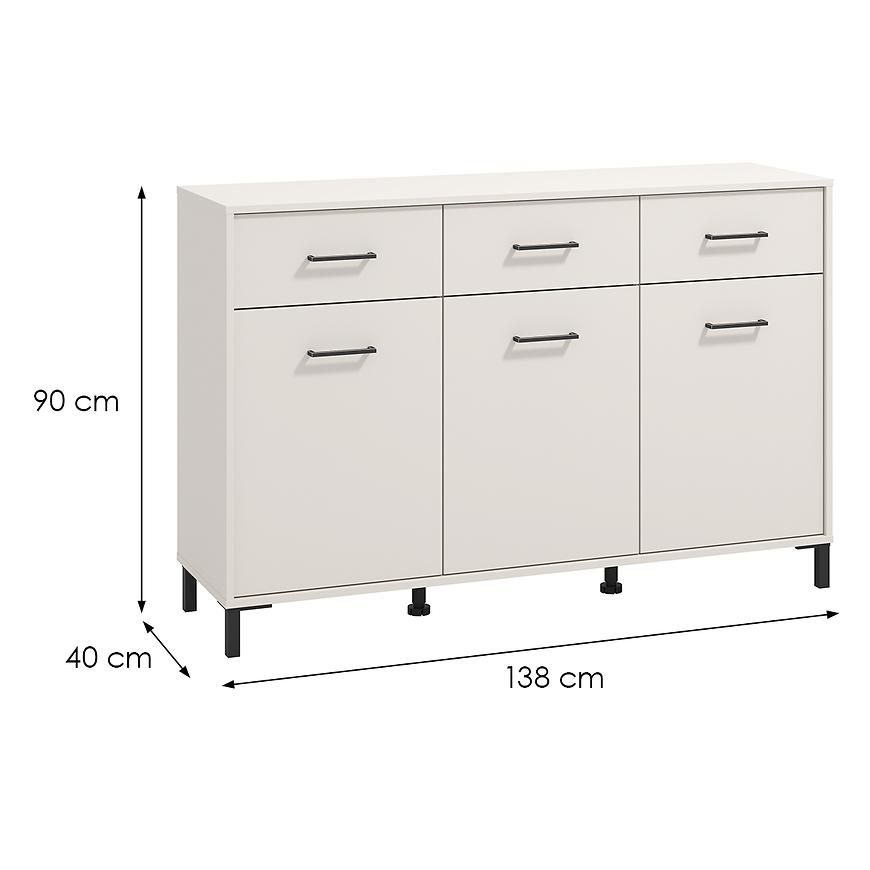 Komoda Vienne to doskonałe rozwiązanie dla osób ceniących elegancję i praktyczność. Wyposażona w trzy drzwi i szuflady, zapewnia wygodne przechowywanie odzieży, dokumentów lub akcesoriów, pomagając utrzymać porządek w każdym pomieszczeniu. Mebel utrzymany jest w modnym kolorze kaszmir z matowym wykończeniem, które dodaje całości nowoczesnego, subtelnego charakteru.