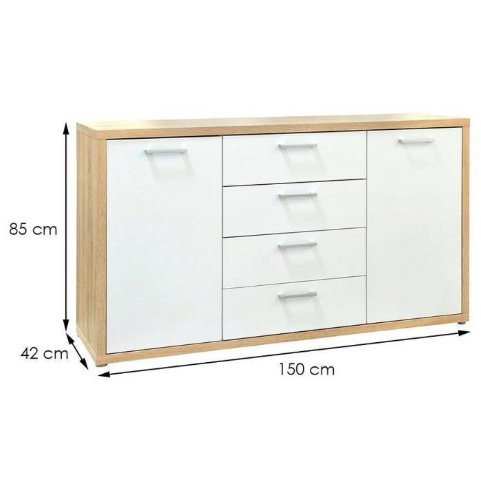 Komoda Vogue to połączenie elegancji, stylu i funkcjonalności. Komoda wpasuje się w wiele aranżacji w nowoczesnych wnętrzach jak również we wnętrzach klasycznych. Szafka posiada szuflady i drzwiczki dzięki czemu ma łatwy dostęp do wnętrza oraz odpowiednią przestrzeń do przechowywania odzieży lub innych przedmiotów. Płyta laminowana to płyta, z której wykonano komodę.