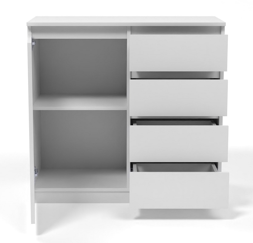 Chcąc sprostać oczekiwaniom osób ceniących nowoczesne rozwiązania, komoda Asti K1D4S została zaprojektowana jako mebel bezuchwytowy. Dzięki temu prezentuje się nie tylko bardzo stylowo, ale także jest wygodna w użytkowaniu – otwieranie drzwi i szuflad odbywa się intuicyjnie, co z pewnością docenią wszyscy domownicy.