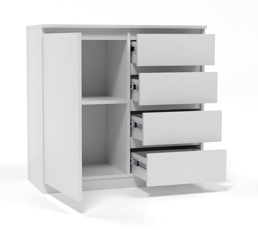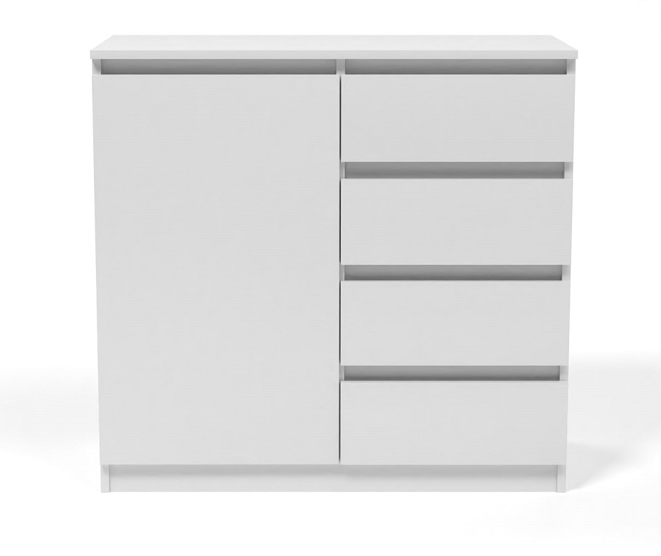 Główną cechą komody Asti K1D4S jest jej kompaktowa forma, idealna do pomieszczeń, gdzie zależy nam na optymalnym wykorzystaniu przestrzeni. Komoda jest jednodrzwiowa, co sprawia, że doskonale sprawdzi się w roli praktycznego schowka. Jednak to nie wszystko – cztery funkcjonalne szuflady zapewniają dodatkowe miejsce do przechowywania drobiazgów, dzięki czemu utrzymanie porządku w Twoim domu będzie łatwiejsze niż kiedykolwiek.
