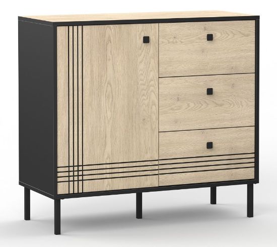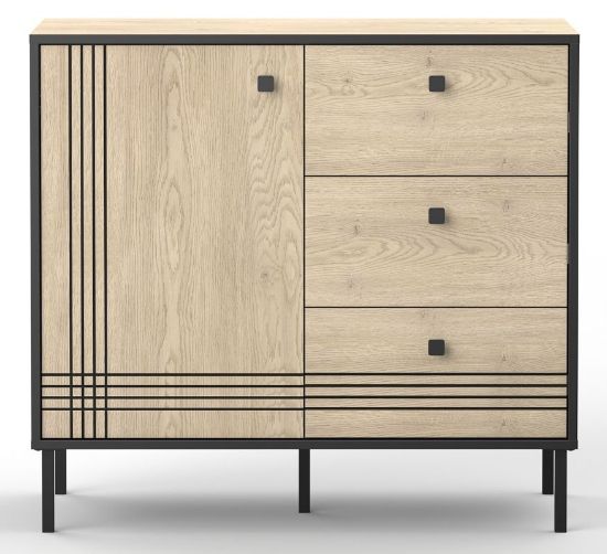 Komoda wąska Quel typ 6 to idealne rozwiązanie dla osób ceniących praktyczne i eleganckie meble. Jednodrzwiowa konstrukcja kryje jedną półkę, która pozwala na uporządkowanie większych przedmiotów, a trzy pojemne szuflady zapewniają miejsce na drobiazgi. Dzięki kompaktowym wymiarom komoda świetnie sprawdzi się zarówno w salonie, sypialni, jak i przedpokoju.