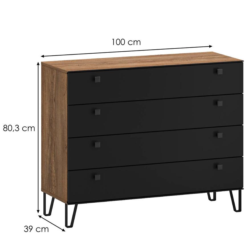 Komoda Weil 4S w wybarwieniu burgund oak to stylowy i praktyczny mebel do nowoczesnych wnętrz. Posiada cztery pojemne szuflady, które umożliwiają wygodne przechowywanie odzieży, dokumentów czy drobiazgów. Jej matowe wykończenie i ciepły brązowy odcień dodają elegancji, a solidna konstrukcja z płyty wiórowej laminowanej zapewnia trwałość. Komoda o wymiarach 100 × 80,3 × 39 cm jest częścią kolekcji WEIL i doskonale sprawdzi się w salonie, sypialni lub przedpokoju. Wymaga samodzielnego montażu.