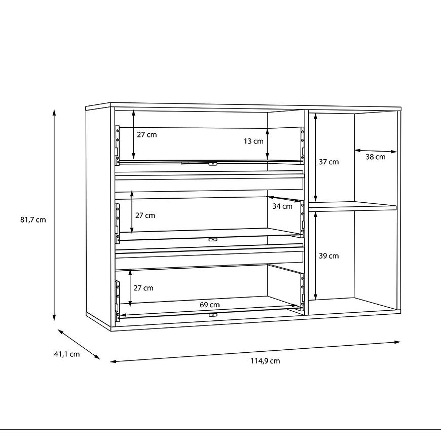 Komoda Whiteheaven to wyjątkowy mebel, który łączy w sobie funkcjonalność, elegancję i nowoczesny design. Ta jednodrzwiowa komoda z trzema szufladami została zaprojektowana z myślą o przechowywaniu i stylowym wystroju wnętrza.
