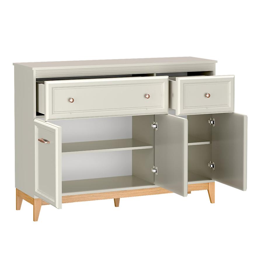 Wzbogać swoje wnętrze o stylowy akcent z komodą Windsor – meblem łączącym funkcjonalność i nowoczesny design. Trzydrzwiowa komoda z kolekcji WINDSOR to idealne rozwiązanie do salonu, sypialni czy przedpokoju, oferujące dużą ilość miejsca do przechowywania przy zachowaniu estetycznego wyglądu.
