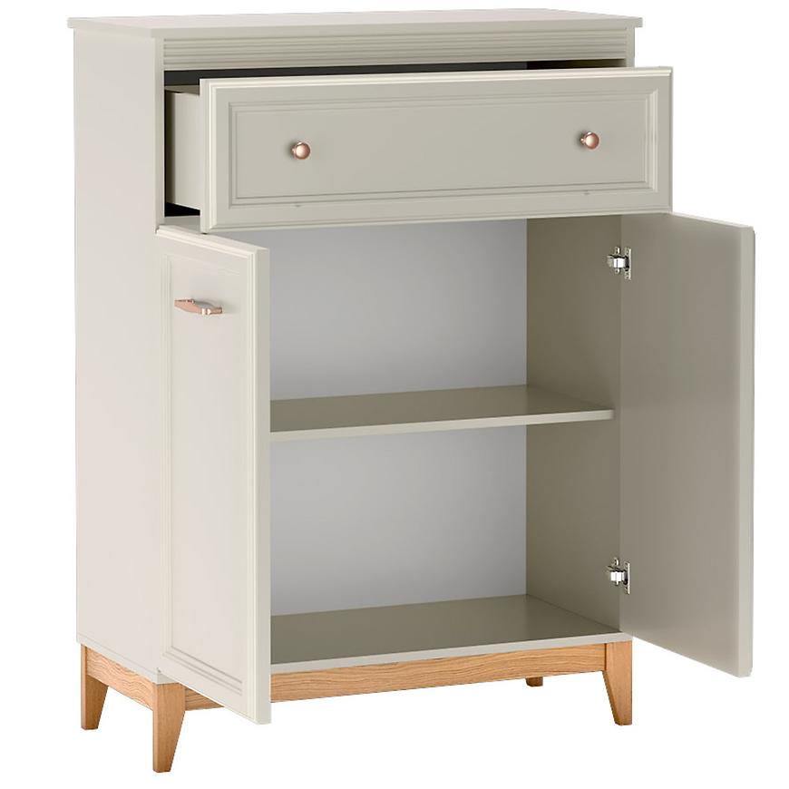 Komoda Windsor to doskonały wybór dla osób, które cenią sobie funkcjonalne rozwiązania w eleganckim wydaniu. Dzięki przemyślanej konstrukcji i nowoczesnej stylistyce świetnie wpisze się zarówno w minimalistyczne, jak i bardziej klasyczne aranżacje wnętrz.