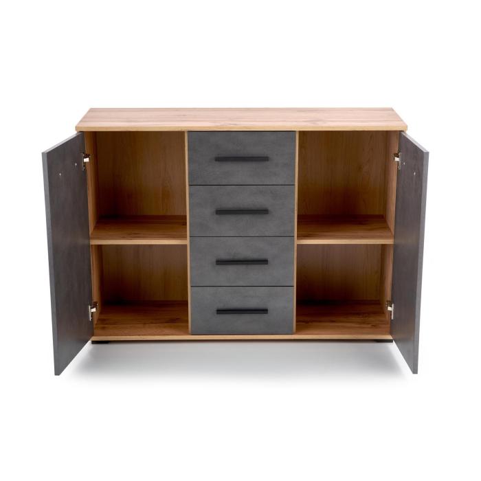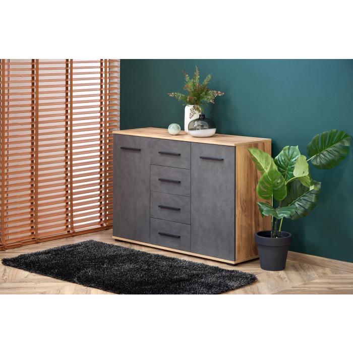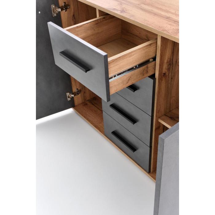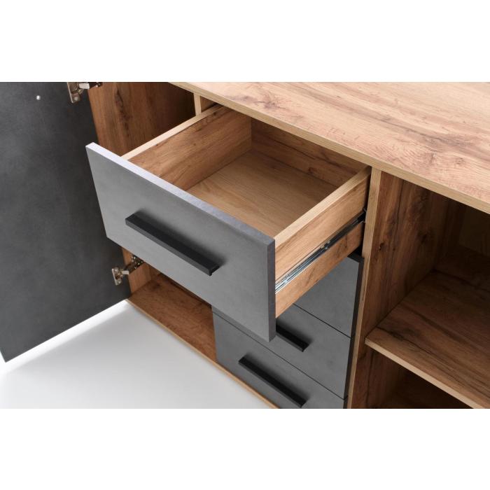 Doskonałym wyborem do pokoju dziennego będzie komoda w kolorze dąb wotan/popiel z serii Wiza, materiał wykonania to płyta laminowana, a obrzeża ABS. Komoda posiada drzwiczki oraz szuflady, dzięki czemu ma łatwy dostęp do wnętrza. Komoda dopełni również wystrój salonu, czy przedpokoju, stanowiąc wygodne miejsce do przechowywania mniejszych i większych rzeczy. Mebel do samodzielnego montażu.