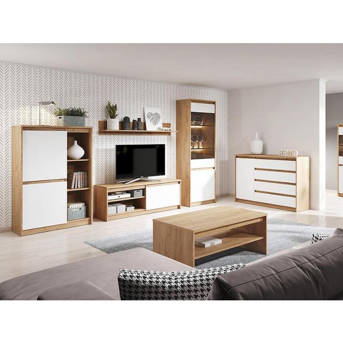 Komoda Xelo to praktyczny mebel do pokoju dziennego, salonu lub sypialni. Kolor mebla biały/dąb craft wpasuje się w wiele aranżacji w nowoczesnych wnętrzach jak również we wnętrzach klasycznych. Szafka wyposażona została w szuflady. Do kompletu można dokupić inne meble z kolekcji.
