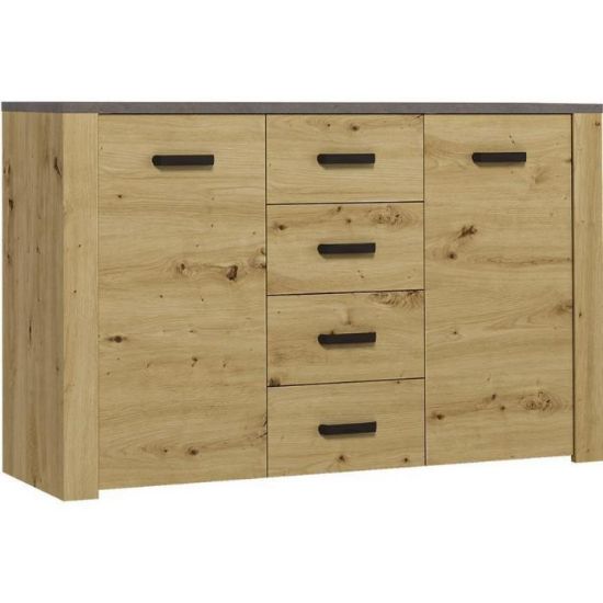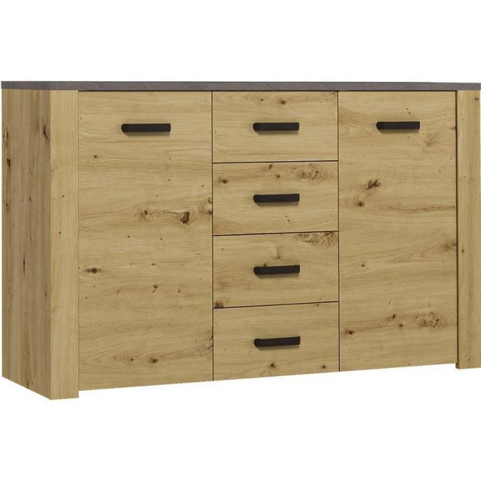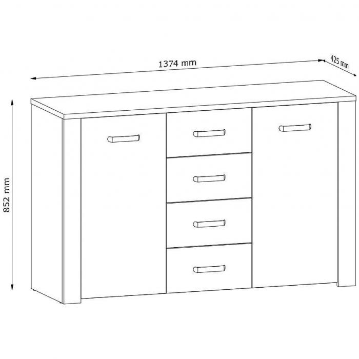 Komoda XL to praktyczny mebel do pokoju dziennego lub salonu. Kolor mebla wpasuje się w wiele aranżacji w nowoczesnych wnętrzach jak również we wnętrzach klasycznych. Szafka posiada szuflady i drzwiczki dzięki czemu ma łatwy dostęp do wnętrza oraz odpowiednią przestrzeń do przechowywania. Górny blat wykonany jest z dekoru imitującego beton. Do kompletu można dokupić inne meble z kolekcji.