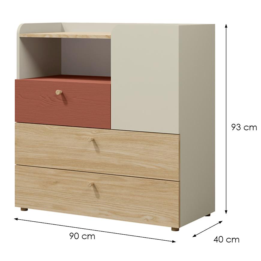 Komoda Yuki 10 Koral/Szary Beż/Dąb Olejowany