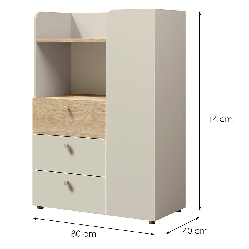 - Komoda Yuki 7 Szary Beż/Dąb Olejowany