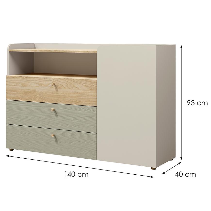 Komoda Yuki 8 Eukaliptus/Szary Beż/Dąb Olejowany