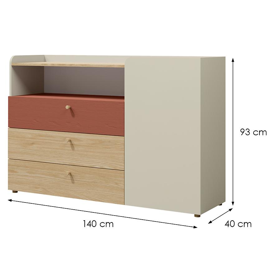 Komoda Yuki 8 Koral/Szary Beż/Dąb Olejowany