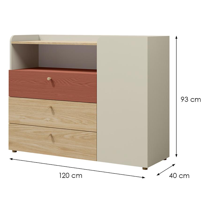 Komoda Yuki 9 Koral/Szary Beż/Dąb Olejowany