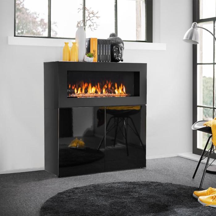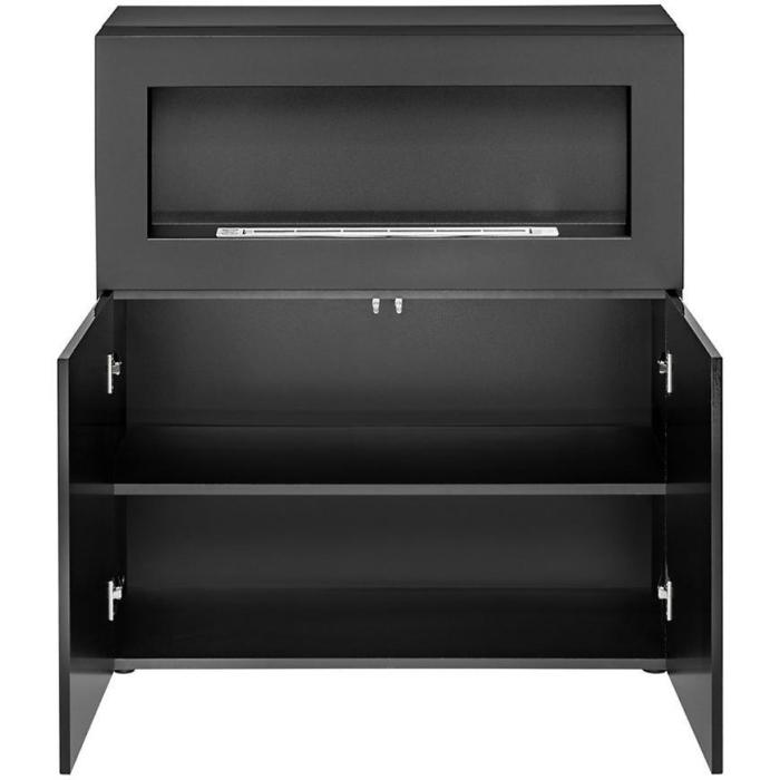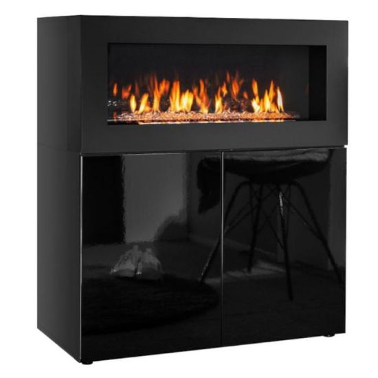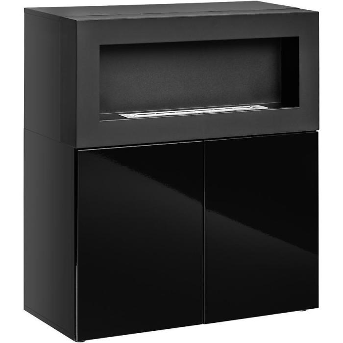 Komoda Camino z biokominkiem w kolorze czarnym to przede wszystkim nowoczesność i funkcjonalność w jednym. Mebel doskonale sprawdzi się w każdym salonie. Materiał wykonania to płyta wiórowa laminowana. Komoda posiada dwie szafki. Wygląd mebli jest nowoczesny, a zarazem uniwersalny. Mebel będzie pasował do wielu pomieszczeń jak np. jadalni czy pokoju dziennego. Meble jest bardzo pojemny, dlatego sprawdzi się w każdym pomieszczeniu - zarówno w sypialni, pokoju dziennym, młodzieżowym, czy też salonie. Mebel do samodzielnego montażu.