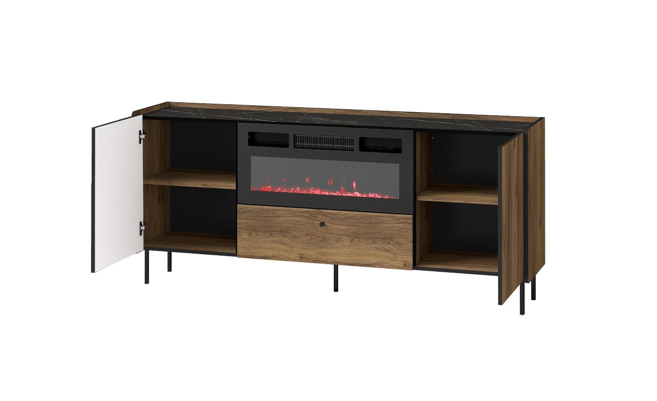 Komoda posiada wbudowany kominek elektryczny - wkład w kolorze czarnym.