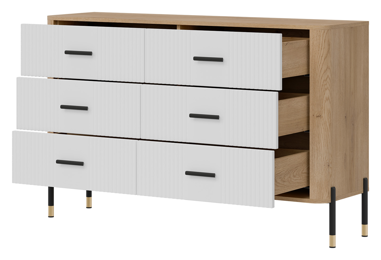 Białe fronty kolekcji Dante w połączeniu z korpusem w dekorze dąb Cremona Torro to idealny wybór do wnętrz, w których dominuje jasność i harmonia. Biel optycznie powiększa przestrzeń, dlatego meble Dante w tej wersji szczególnie dobrze sprawdzą się w mniejszych pomieszczeniach, nadając im lekkości.