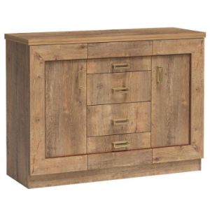 Klasyczna komoda Tadeusz to połączenie elegancji, stylu i funkcjonalności. Szafka w kolorze dąb lefkas świetnie odnajdzie się w nowoczesnych wnętrzach jak również we wnętrzach klasycznych. Z pewnością wpasują się w wiele aranżacji. Komoda posiada szuflady dzięki czemu ma łatwy dostęp do wnętrza oraz odpowiednią przestrzeń do przechowywania odzieży. Do kompletu można dokupić inne meble z kolekcji Tadeusz.