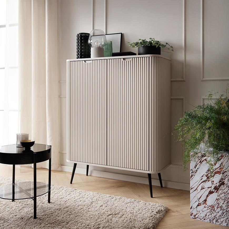 Uniwersalny cashmere dekor nadaje meblom lekkości i sprawia, że idealnie komponują się zarówno z jasnymi, jak i ciemnymi aranżacjami. Matowe wykończenie podkreśla nowoczesny charakter kolekcji i dodaje jej subtelnej elegancji.
