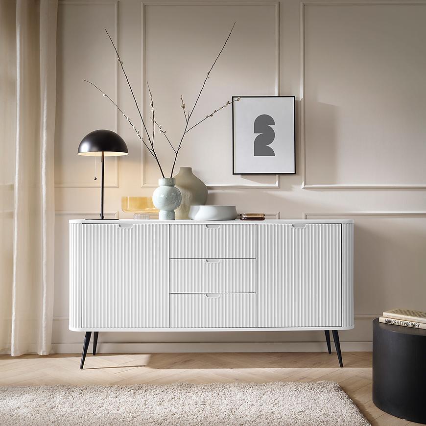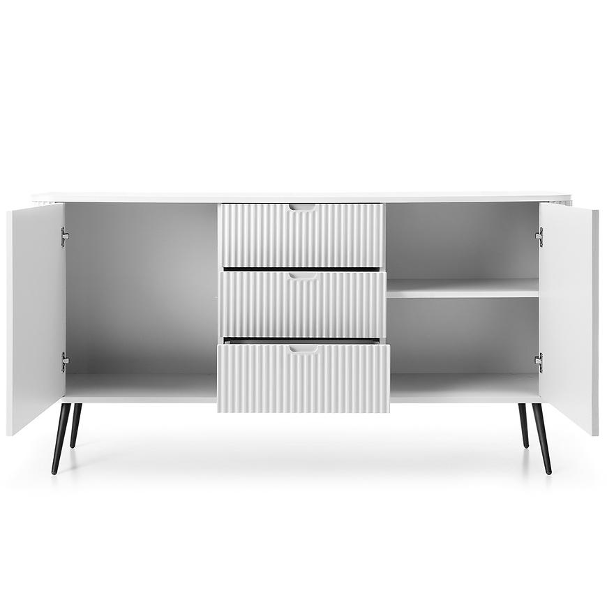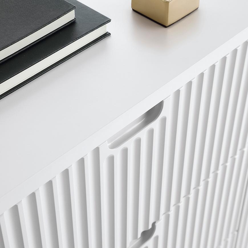 Uniwersalny biały dekor nadaje meblom lekkości i sprawia, że idealnie komponują się zarówno z jasnymi, jak i ciemnymi aranżacjami. Matowe wykończenie podkreśla nowoczesny charakter kolekcji i dodaje jej subtelnej elegancji.