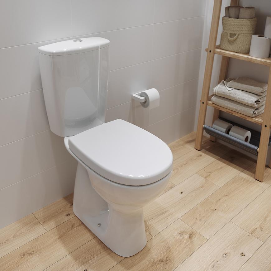 Kompakt Arteco został wyposażony w oszczędny system spłukiwania 3/5 l, który pozwala zmniejszyć zużycie wody, zachowując pełną skuteczność działania. W zestawie znajduje się deska wykonana z wytrzymałego duroplastu, odpornego na uszkodzenia i łatwego w pielęgnacji. Dzięki funkcji wolnego opadania deska zamyka się cicho i bezpiecznie, a system szybkiego wypinania umożliwia szybkie zdjęcie jej do mycia. Wersja pionowa kompaktu zapewnia wygodne podłączenie odpływu, a całość stanowi praktyczne i estetyczne rozwiązanie dla każdej łazienki.