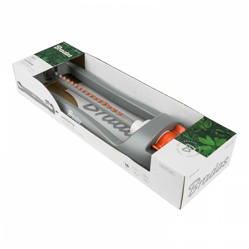 WHITE LINE kompaktowy zraszacz oscylacyjny to wydajne i funkcjonalne rozwiązanie do nawadniania ogrodu o powierzchni do 312 m². Wyposażony w 16 trwałych dysz zapewnia równomierne rozprowadzanie wody, a prosta regulacja zasięgu za pomocą suwaków umożliwia precyzyjne dostosowanie pracy urządzenia do indywidualnych potrzeb. Elastyczna konstrukcja zraszacza jest odporna na łamanie pod wpływem nacisku, co gwarantuje jego długotrwałe użytkowanie. Dodatkowym atutem jest dołączona igła do czyszczenia dysz, ułatwiająca konserwację i utrzymanie wysokiej wydajności zraszacza przez cały sezon.