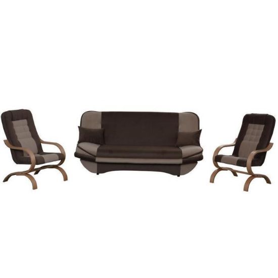 Klasyczny i wyjątkowo funkcjonalny komplet, który składa się z wygodnej kanapy i dwóch foteli. Komplet wpasuje się w każdą aranżację pokoju dziennego, salonu bądź innego, dowolnego pomieszczenia. Wersalka nie posiada podłokietników, co pozwala na dodatkowe wykorzystanie powierzchni siedzenia i spania. Komfortowe siedzisko oraz wygodne oparcie pozwoli na pełen relaks po ciężkim dniu.