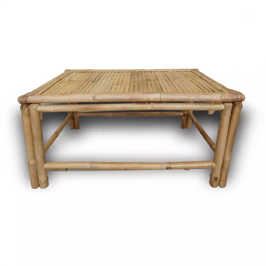 Modułowa konstrukcja mebli pozwala na łatwe przemeblowanie i dostosowanie zestawu do własnych potrzeb oraz przestrzeni. Dzięki temu można tworzyć różne układy, które będą odpowiednie zarówno na większe spotkania, jak i na indywidualny wypoczynek. Stolik, który również został wykonany z drewna bambusowego, jest wystarczająco duży, aby pomieścić przekąski, napoje czy dekoracje, ułatwiając organizację spotkań na świeżym powietrzu.